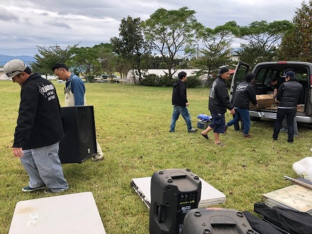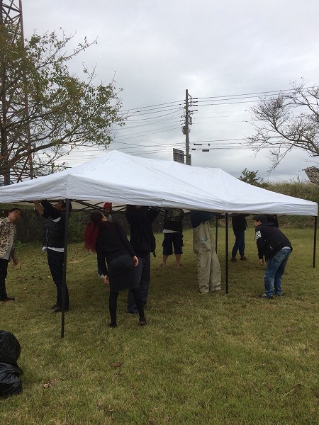 DJ ブース 用 の  テント を  みんな で 張ったら