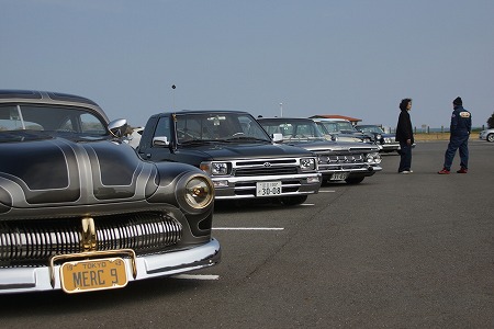 海沿い の 駐車場 に  クルマ を  並べて