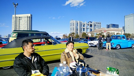 気持ちよく クルーズ し、 集まった クルマ 見て回り