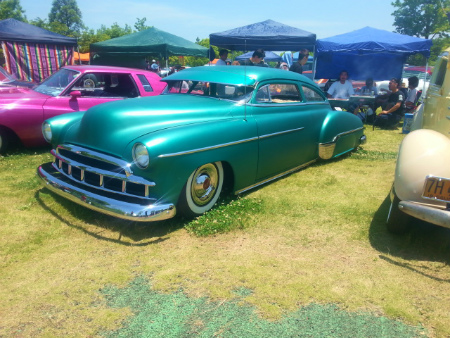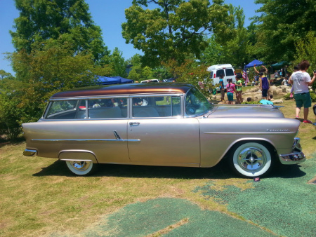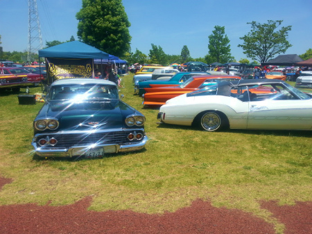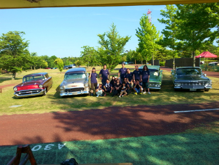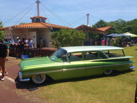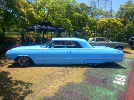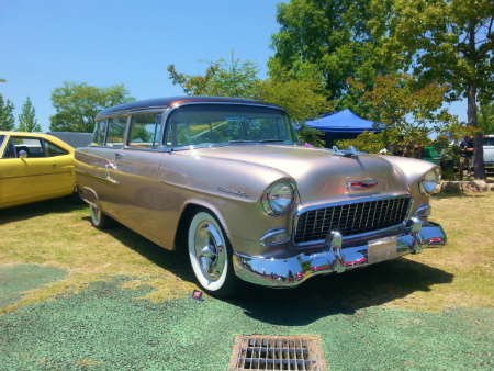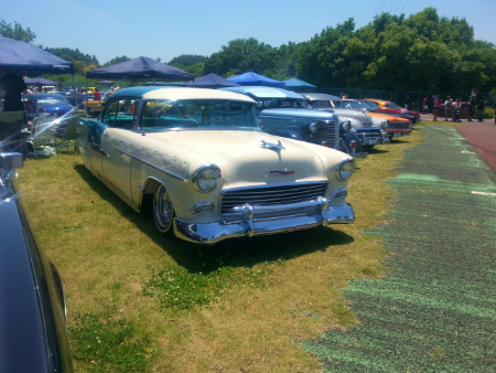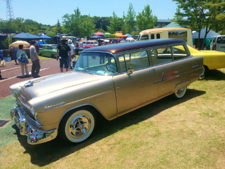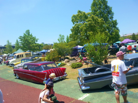 会場 では、   良い  場所 を  頂き、  55、 57、 59 の  3台 を  並べまして