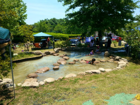 あまりの  暑さに、   池 で  子供 や  こういちろう が   泳いでまして