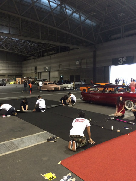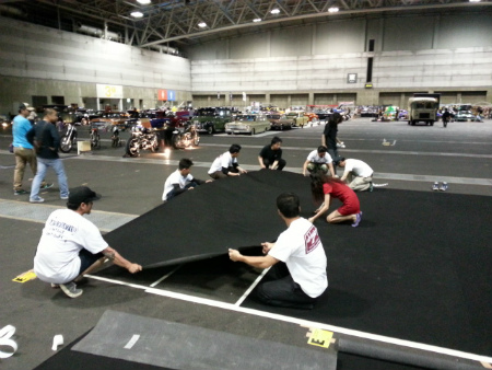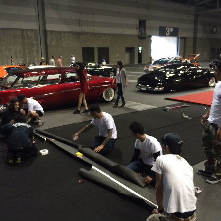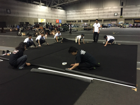 レイアウト が 決まったら、 カーペット を 敷くところ から 始まりまして、