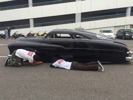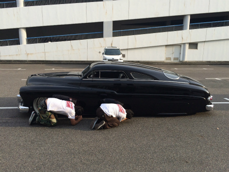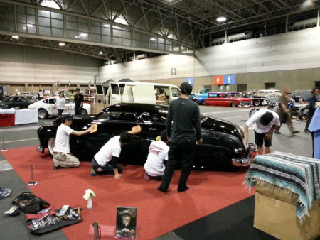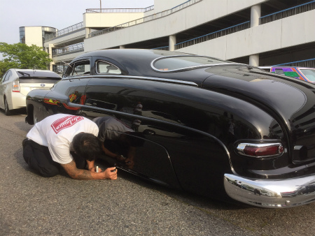 タイヤ ワックス を 塗る 人、 クローム を 磨く 人、