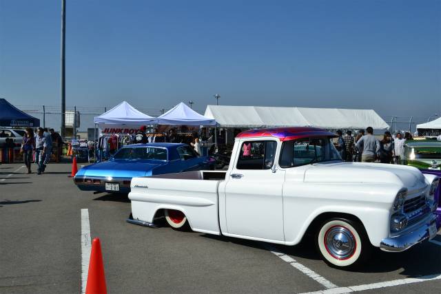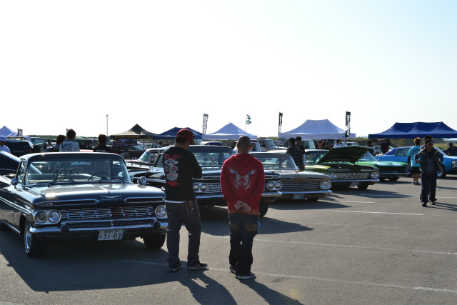 ブース 設置 も 完了し、 クルマ を 並び替え。