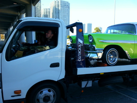 自分達 の  クルマ ですが、   会場 に  到着 した  姿 を  見て、