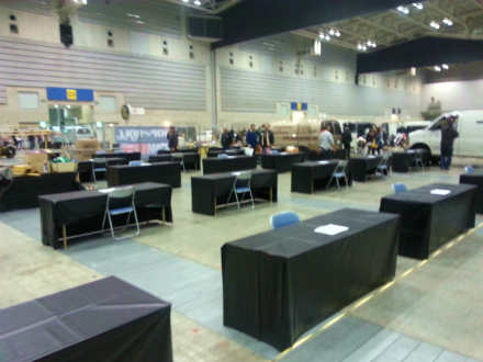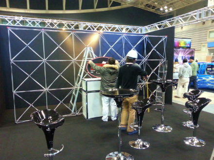 ブース の  セット アップ を  終え、   会場 を  見渡すと