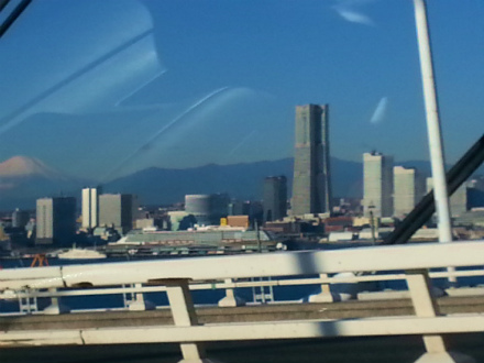 道中、   富士山 と、  ショー 会場 の  パシフィコ を  望みながら
