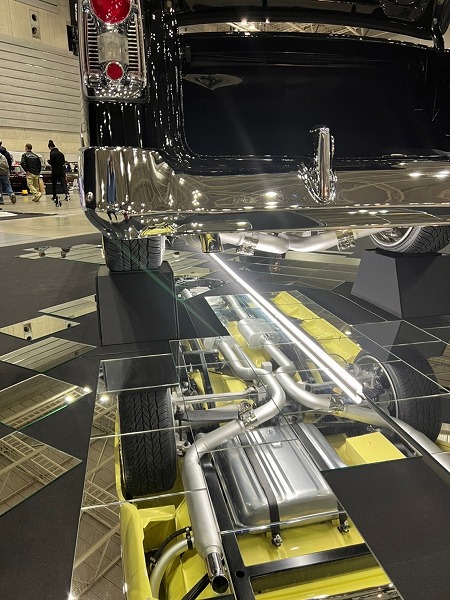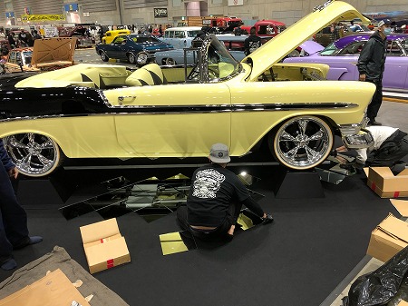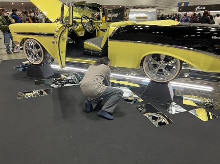 ミラーをクルマの下に敷いて展示するので