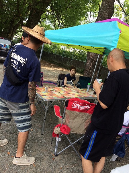 日陰 に 日よけ の テント を 張って 一息。