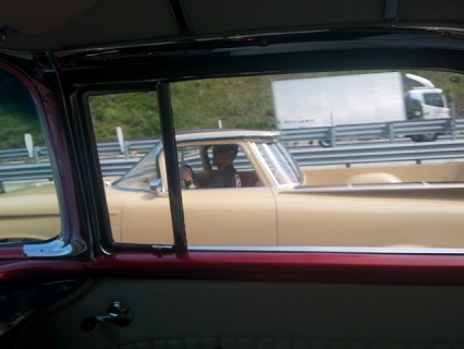 抜かれざま に 見てみたら、 こんな ふざけた 顔 して 運転 してやがります、、、、