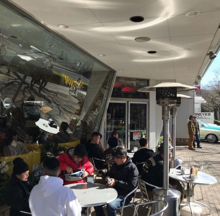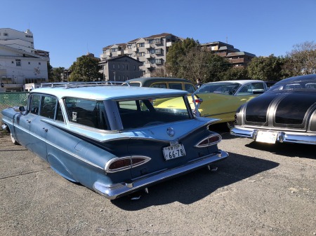 MOON EYESの 駐車場で K上さんの