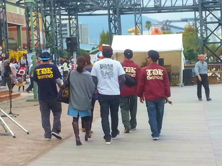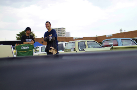 クルマ を  停めてた、  目の前 の   ベンダー ブース が