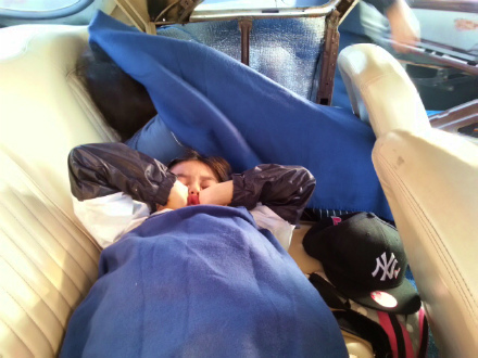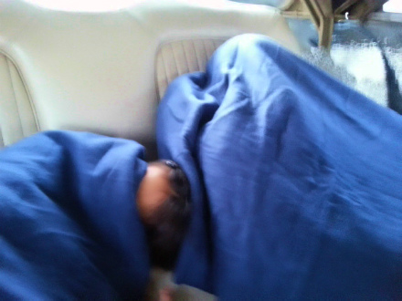サイドガラス も ない   後部 座席 で  爆睡 してまして