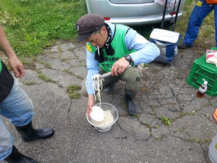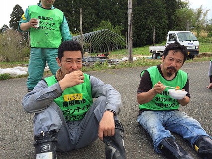 気温 も  高く、  ボランティア に  参加 している 人の  中には