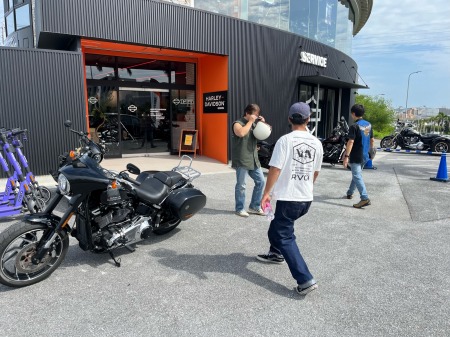 朝、ハーレー沖縄に集合して、珈琲飲んで