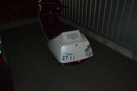ゴミ袋 かと 思ったら、 着地 してる スクーター でした。。。。