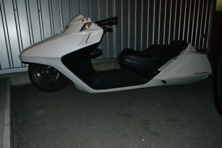 M-RYU君 の スクーター でして、 これじゃ スタンド 要らないね。。。。。