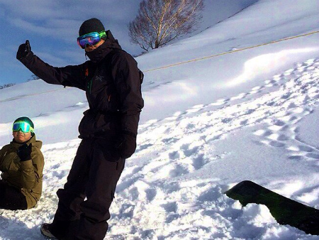 RYU くんが   雪山 で  スノボ してる 時に