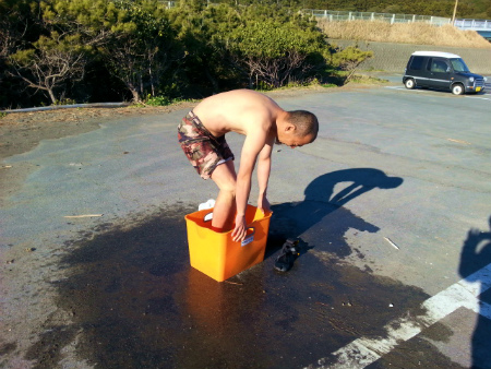 寒いなか、  波乗り してまして