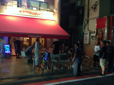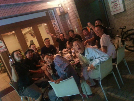 では では と、   みんな で  晩飯  食べに  行くことに  なりまして