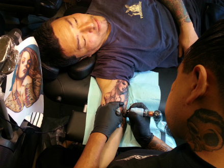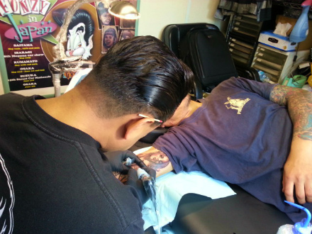 エアブラシ や、 TATTOO を 施工 しながら