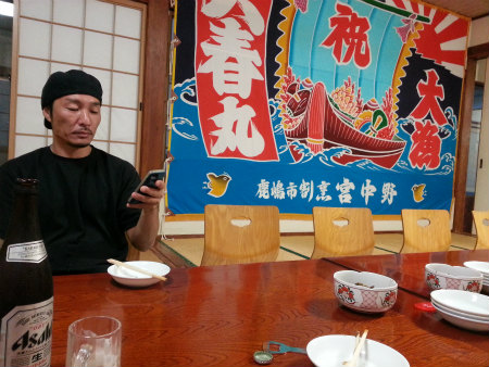 夜 は 親戚 も 集まって、 楽しく 飲んで