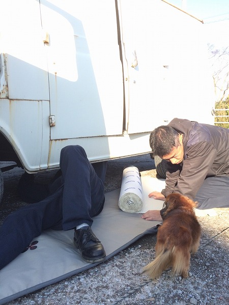 寝板 代わり に   サーフ ボード に  ケース 敷いて