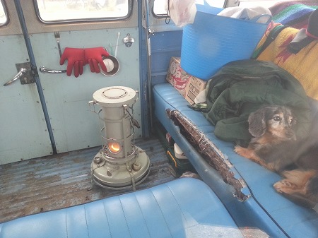 「  寒くて  死なないように 」  と  ストーブ  焚いたまま に  してまして、