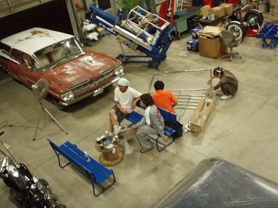 楽しそうに、 ルーフ キャリア  組立中。