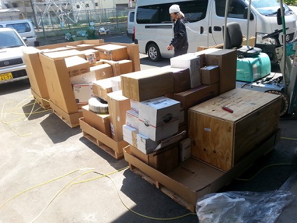 この日 は、 アメリカ から 4 パレット 分 の 貨物 も 到着 しまして