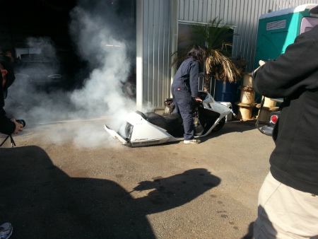 怒った RYU君 が、 スクーター で バーン ナウト して
