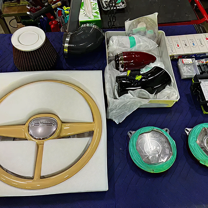 オールペンや内装張り替え、アクセサリーの追加や、タイヤホイールへの変更など お気軽に御相談ください