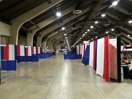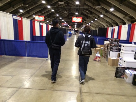 メイン ホール に、  出展者 は  みんな が