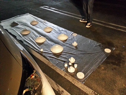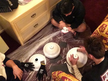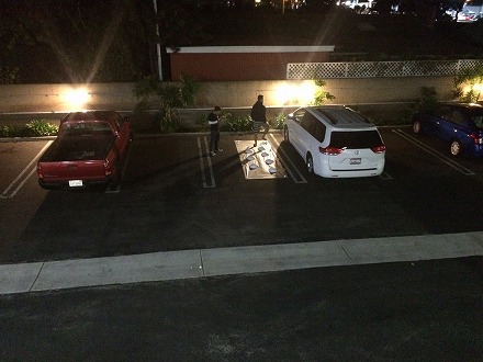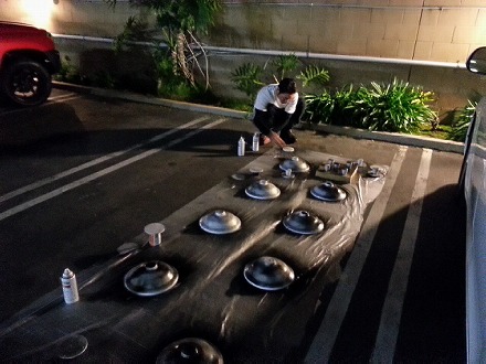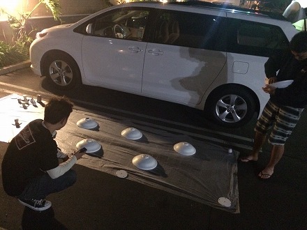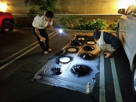 足付け を  終えて、   駐車場 で   塗装 の  準備 を  して