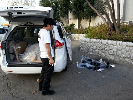 セット アップ しに   会場 に  向かいまして