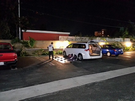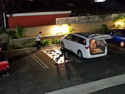 夜中 の  12時頃 に   MOTEL に   戻ってきたら、