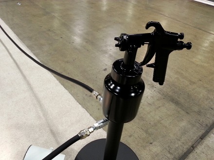 ポール の  先端 に  塗装用 の  ガン が