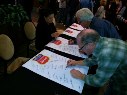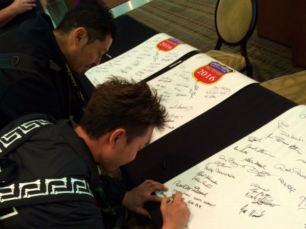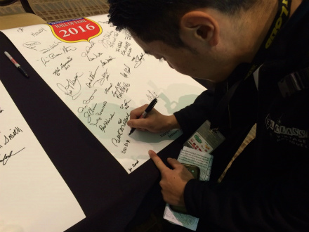 出席 した 人 は、   GNRS 2016 の   大きな 台紙 に
